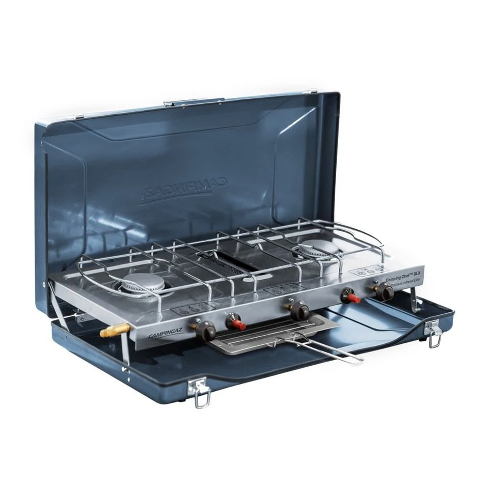 The multi-functional Camping Chef Folding is available in a lightweight and easily portable, With two powerful and efficient burners plus an additional downward grill makes for cooking up great meals at the campsite.