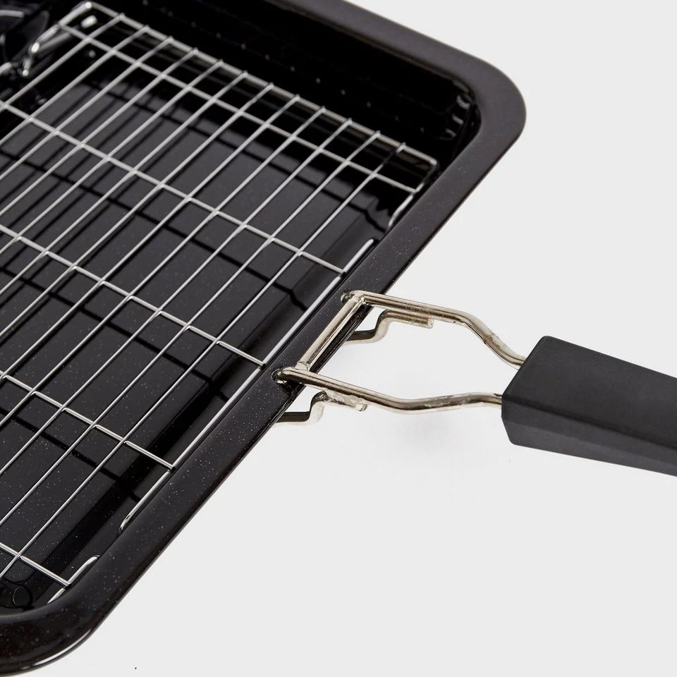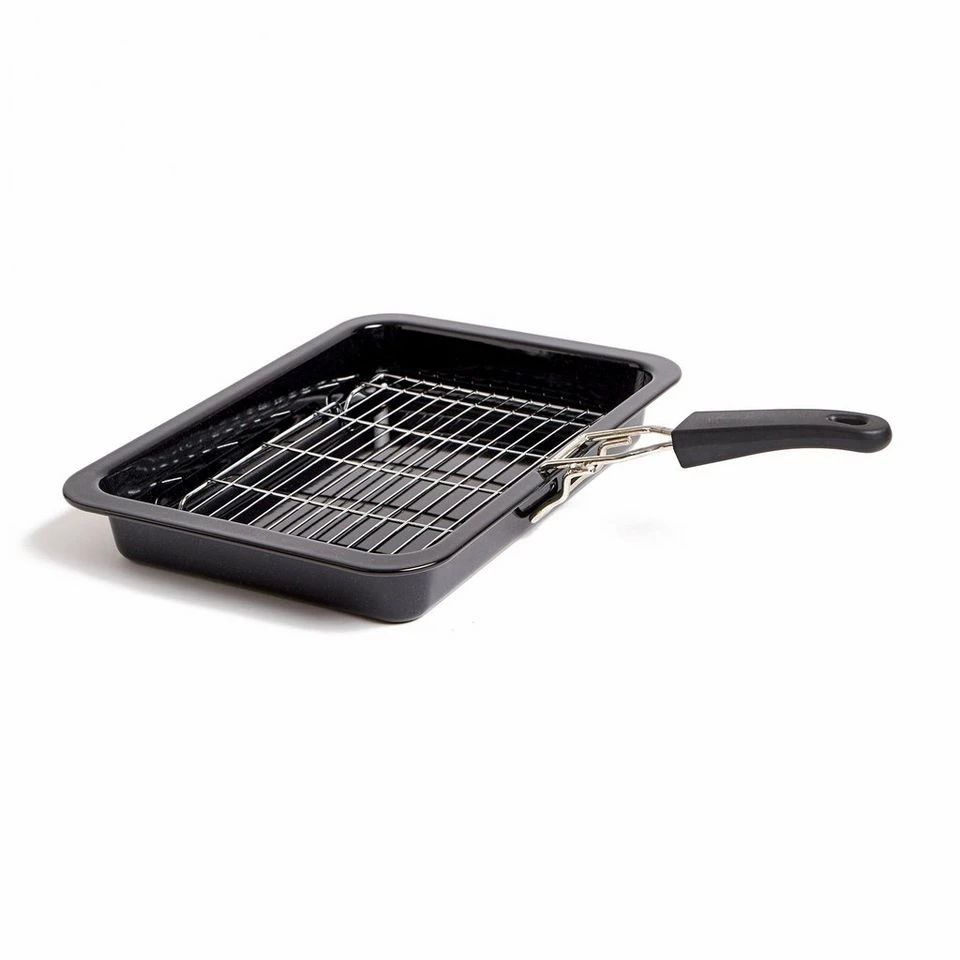 A handy grill pan for barbeques and ovens with a non-stick enamel finish.