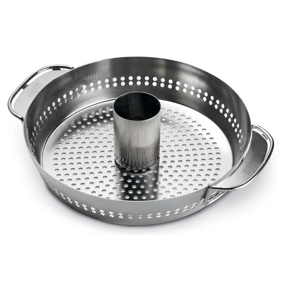 Not your run-of-the-mill poultry roaster, the versatile, 2-in-1 design of the Weber Gourmet BBQ System Poultry Roaster lets you prepare a crispy yet moist chicken in the centre, while your vegetables simmer around the rim.